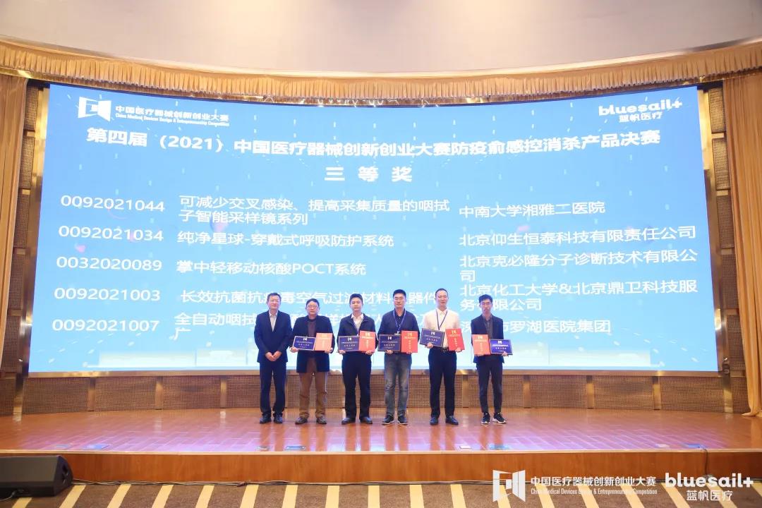 在2021年10月18日-19日在山东淄博举办的第四届(2021年)中国医疗器械创新创业大赛防疫与感控消杀产品决赛中,纯净星球-穿戴式呼吸防护系统荣获三等奖,成为“唯一获奖”的穿戴式呼吸防护产品。