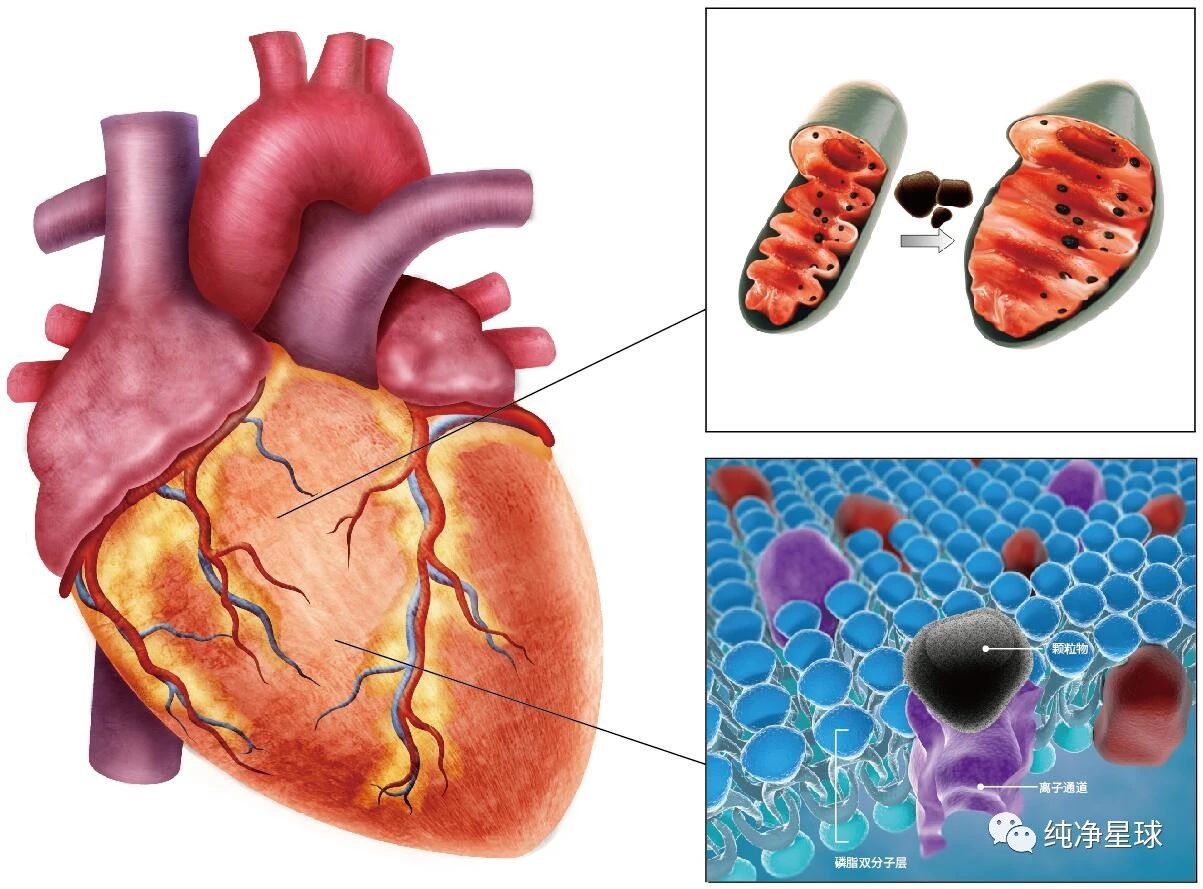 欧美多所大学共同领导的一项研究发现,空气污染纳米颗粒可以进入人体心脏细胞中,对线粒体造成损害。线粒体是细胞中制造能量的细胞器,被称为细胞的发电厂。心肌细胞中存在着丰富的线粒体,线粒体对于维持心脏功能具有至关重要的作用。空气污染纳米颗粒可导致线粒体内活性氧的积累,进而导致线粒体膨大、内膜非特异性孔道产生等不良结果,从而加速线粒体凋亡。