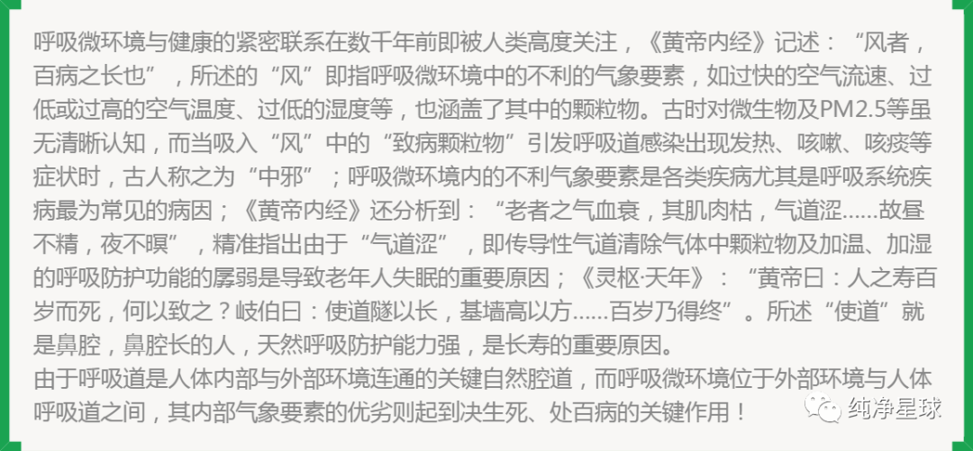 而当传导性气道的呼吸防护功能下降或崩溃时,即使住进稀缺的无菌病房,其内部百级洁净的空气虽可保证不增加气道微生物负荷,但个体化需求的温暖湿润气流及有助炎症消除的足量空气负氧离子也无法提供。