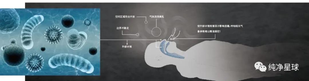 “自然呼吸微环境”固有的三大缺陷:1.空间区域完全开放——与外部环境无隔离,存在交叉感染风险;2.边界不确定——吸入气体的温湿度无法精准调控;3.气体流场紊乱——存在废气回吸现象,如呼出的CO₂废气、病毒颗粒、炎性分泌物颗粒等可被再次吸入。