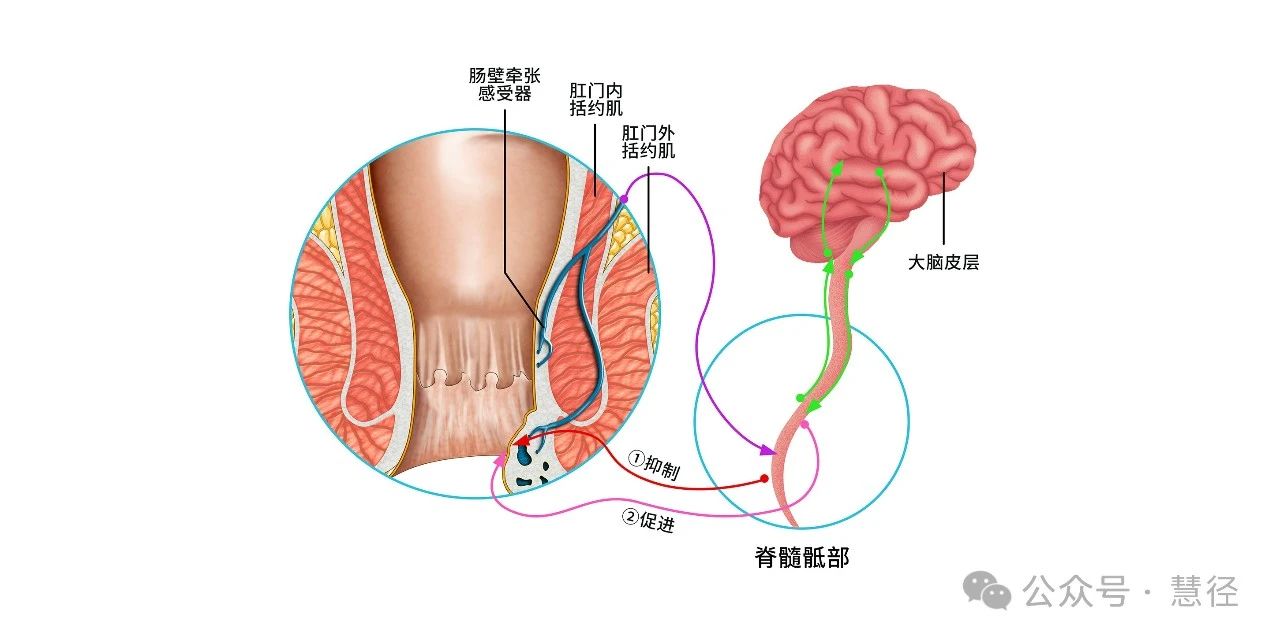 如果在不适宜排便的时候,此时大脑会通过脊髓向下发送冲动来抑制排便反射,通过躯体运动神经元传递的冲动,能使肛管外括约肌保持收缩状态,从而在需要控制排便时防止粪便排出。