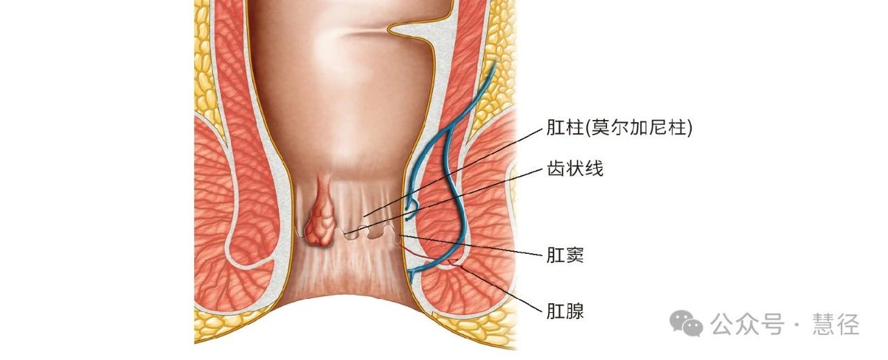 肛瓣(相邻肛柱下端之间半月形黏膜皱襞)与两个肛柱(纵向的黏膜皱襞,通常6-10个)下端之间共同围成的开口向上的狭长水滴状隐窝称肛窦,窦深约3-5mm,其底部有肛腺的开口。