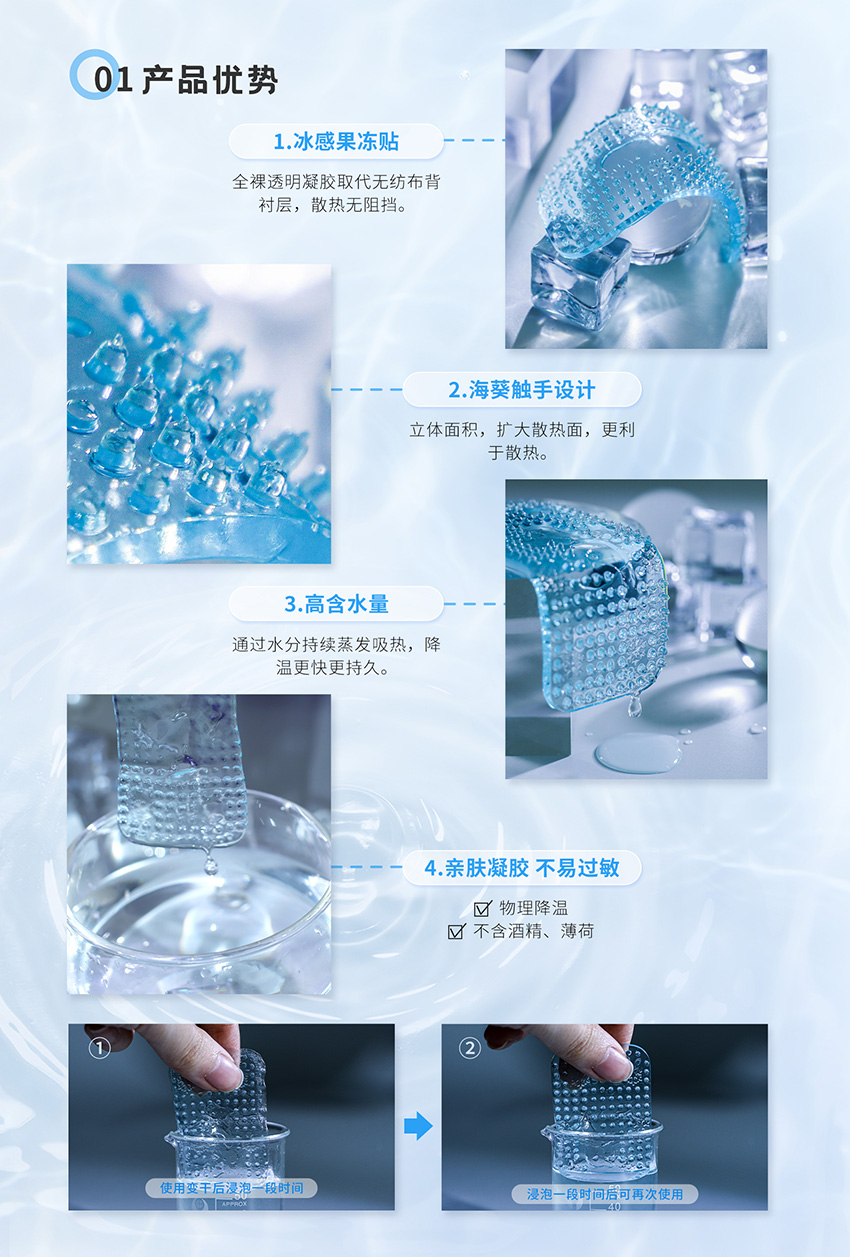 首创冰感果冻贴,全裸透明凝胶取代传统无纺布背衬层;